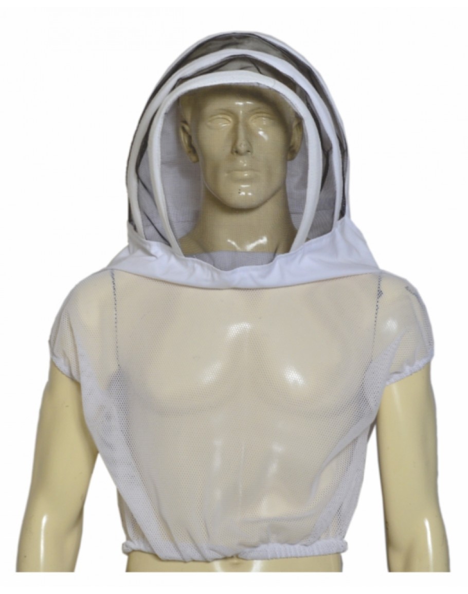 Fencing style veil hood with nylon mesh.